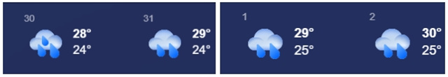 展期菲律賓天氣:6-10月是菲律賓雨季,臺(tái)風(fēng)較多,請(qǐng)您出發(fā)前多關(guān)注天氣預(yù)報(bào),注意安全!