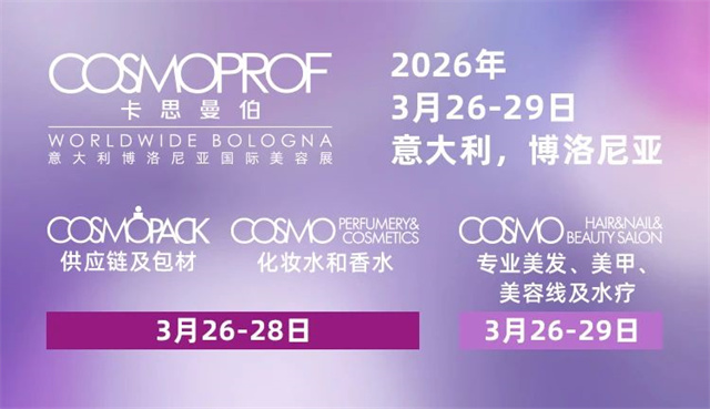 COSMOPROF卡思曼伯意大利博洛尼亞國際美容展是一場涵蓋三大主題展區的盛會,每個展區分別聚焦特定行業及銷售渠道。三大展區將于3月26日(周四)同期開放,其中Cosmopack與Cosmo Perfumery& cosmetics將于3月28日(周六)閉幕,CosmoHair、Nail& Beauty Salon則將于3月29日(周日)閉幕。